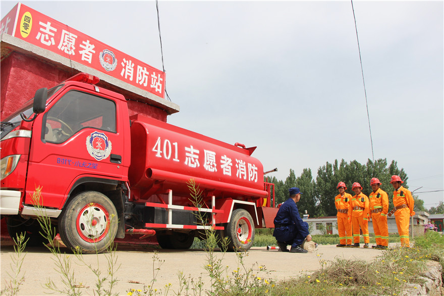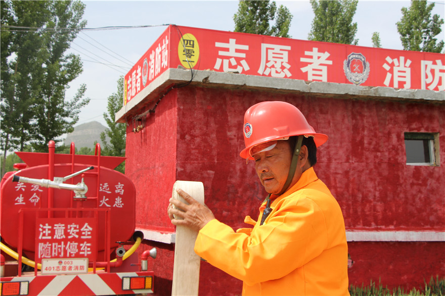 給張維能印象比較深的是6月24日,附近小營房村一民房著火!爱斕煜挛,接到電話后,我們立即開著“消防車”去救援,因為是隔壁村,離的比較近,10幾分鐘就到了現(xiàn)場。當時火勢仍在蔓延,我們立刻噴水滅火,有效地阻止了火勢蔓延,也為消防隊撲滅火災營造了良好救援條件,盡可能地減小了火災帶來了損失,”張維能信心滿滿的說。