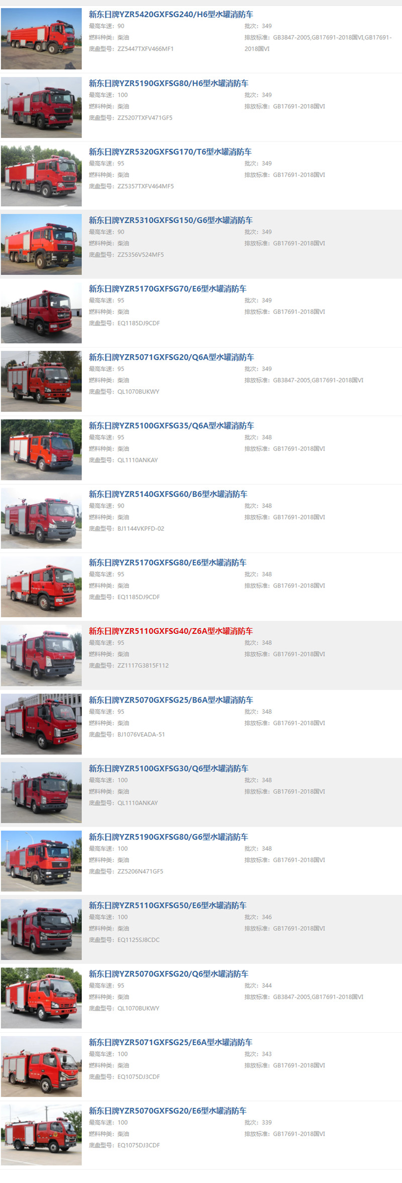 以上是所有17款水罐消防車公告,包含了車型的整車型號,最高車速,底盤型號,公告批次,更多水罐消防車詳細(xì)參數(shù)資料歡迎來電咨詢152-7133-5277.