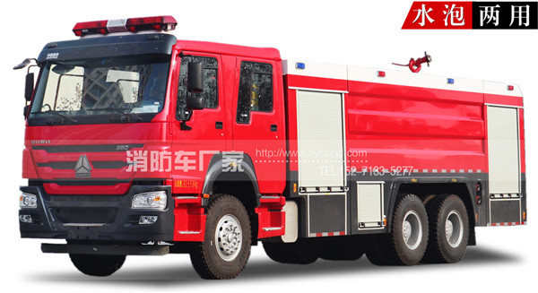 泡沫消防車與水罐消防車結(jié)構(gòu)相似,除相同部分外,泡沫消防車主要增添了泡沫液罐、泡沫比例混合裝置、空氣泡沫一水兩用炮及其它附加裝置等。